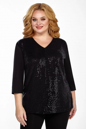 Праздничная элегантная блузка прямого силуэта с V-образным вырезом горловины, втачным рукавом 3/4, разрезами в боковых швах. Блуза имеет застежку в среднем шве спинки на 1 навесную петлю, 1 пуговицу. Данная блуза отлично подойдет для составления различных нарядных луков.