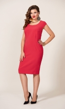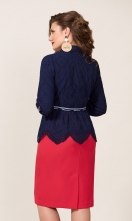 Жакет полуприлегающего силуэта, с подрезом по линии талии, на подкладке до линии талии. По переду расположены рельефы, баска с лёгкой сборкой, по линии талии настрочена декоративная тесьма, по центру застёжка на петли и пуговицы. По спинке расположены талиевые вытачки, средний шов и баска с лёгкой сборкой, по линии притачивания баски настрочена декоративная тесьма. Низ баски с фестонами. Рукав втачной на подкладке, присобранный на пату с пуговичкой. Платье полуприлегающего силуэта, чуть зауженное к низу, по переду расположены нагрудные и талиевые вытачки.