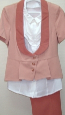 | Длина жакета примерно 56см., длина рукава примерно 22см. Брюки длина примерно 108см, длина по среднему примерно 81см. Блузка длиной примерно 66см., длина рукава примерно 17см. |
