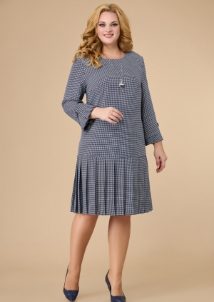 Платье полуприлегающего силуэта с втачным рукавом. Спинка платья со средним швом. По низу платья и рукавов односторонние складки.