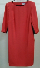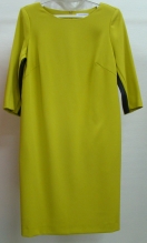 Яркое платье полуприлегающего силуэта, длиной чуть выше середины колена. Лиф платья по переду с нагрудными вытачками. Рукав втачной, длиной 3/4. Боковая часть из отделочной ткани, переходящая в ластавицу рукава. В боковых швах обработаны карманы. Спинка со средним швом и талиевыми вытачками. Застёжка-молния в среднем шве.