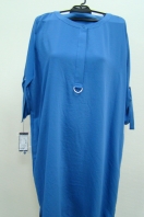 Платье женское, прямого силуэта, застежка ввиде планки, внутри застегивается на петли и пуговицы. На переде располагаются нагрудные вытачки. По низу планки притачано полукольцо. Спинка не разрезная, без вытачек. Горловина переда и спинки обработана бейкой и обтачкой. От бейки настрочен пагон на плечо и переходит на рукав, по низу притачаны два полукольца. Рукав рубашечный, одношовный, втачной, по центру низа притачана пата, продевается в полукольца погона. Боковые карманы, по переду прострочена отделочная строчка, по входу в карман, ввиде прямоугольника. Горловина обработана обтачкой. Низ окантован косой бейкой, закругленный, спинка длиннее переда, с прогибом по боковым швам.