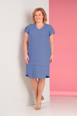 Оригинальное платье прямого силуэта, с незаметными карманами обработанными в боковых швах. Горловина V-образная. Рукав короткий декорирован патами и пуговицами. Спинка со средним швом.Особое положение боковых швов визуально делает силуэт стройнее, при этом женщина выглядит на два размера меньше, но чувствует себя абсолютно комфортно. На рост 164-170 см. Длина изделия 100 см.